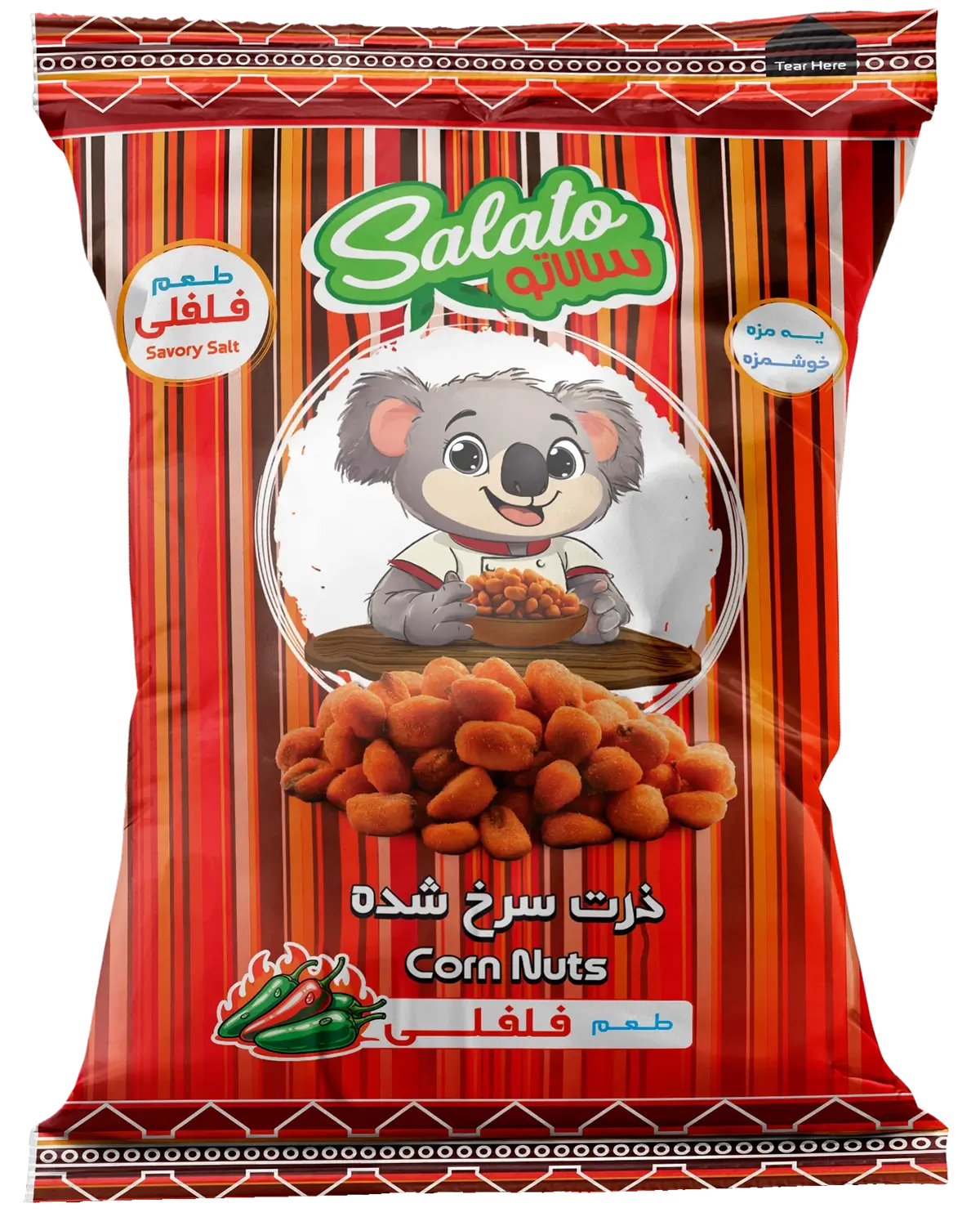 هیجانتون رو با مزه ذرت برشته فلفلی سالاتو به اوج برسونین! دونههای ترد ذرت، با تندی دلپذیر فلفل آغشته شدن تا حواستون رو قلقلک بدن. طعمی گرم و آتیشین که نه میسوزونه، نه میذاره سرتون به کار دیگه گرم شه! اول ملایه اما کمکم گرمای خوشایندی روی زبان میگذاره. این میانوعده پرشور، منبعی پایدار از انرژی با کربوهیدراتهای پیچیدست که برای بعد ورزش یا دورهمیهای سالاتویی ها عالیه. این محصول بدون رنگ و طعمدهنده مصنوعیه که نمی تونین از مزه اون بگذرین! سالاتو با روش سرخ کردن سالم و مدرن، با کمترین روغن اضافی، محصولی سالم و پرخاصیت رو برای شما تولید کرده. این اسنک آتشین در جای خشک و خنک تا 6 ماه تازه میمونه.