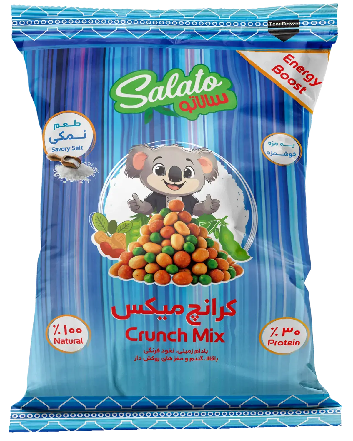 سادگی همیشه جواب میده! کرانچ میکس نمکی سالاتو، ترکیبی از بادام زمینی بوداده شده و روکش دار و غلات تردی مثل نخود سبز، گندم، نخود و باقالا برشته شده، رست شده با کمی نمک که مزهی طبیعی مواد اولیه رو برجسته میکنه. با طعم متعادل و بافت تُرد، مناسب رژیم غذایی سالم و روزهایی که یه سالاتویی دنبال یه اسنک مطمئن و بیدردسر می گرده. سادگی و اصالت طعمش، یادآور تنقلات سنتی با یک حس مدرن شده. ایدهآل با نوشیدنیهای سرد یا یک میانوعده سریع در محل کار شماست. حبوبات کمیاب و پروتئین بالا، با فیبر بالا و چربی سالم با روش رست سالم و بدون روغن زیاد، بدون رنگ یا طعم دهنده مصنوعی محصولی باکیفیت و مغذی را ارائه میده. کرانچ میکس نمکی 6 ماه ماندگاری در محیط خشک و خنک داره.
